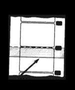 Die symetrische Klebestelle. Der Keilschnitt liegt mitte Bildstrich, also etwas im Bildfuß und etwas im Bildkopf . Schnittbreite 0,85mm.
